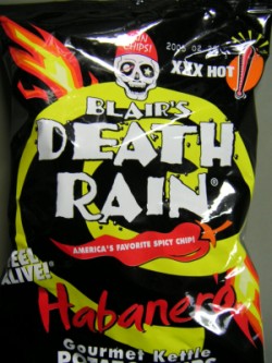暴君ハバネロを上回るという噂のデスレイン ハバネロ。 食べてみると…風味の点では暴君に軍配が上がるものの、この辛さは! 「辛いよ、ねーたん」とか思いつつ、もう1枚もう1枚… デスレインは、ソニープラザ、ヴィレッジヴァンガード、成城石井などで 買えるようです。秋葉原なら先日オープンのワタベ商店で。